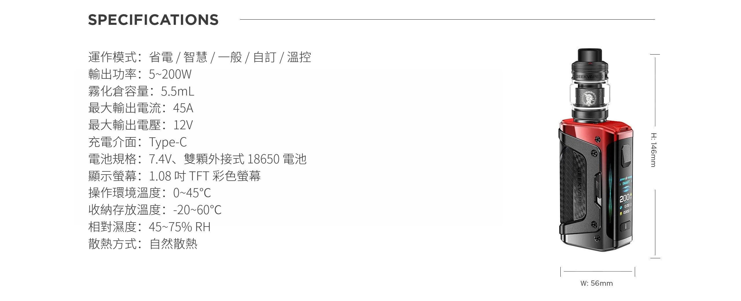 - 商品名稱: Geekvape Aegis Legend 5 L500 18650雙電大煙主機